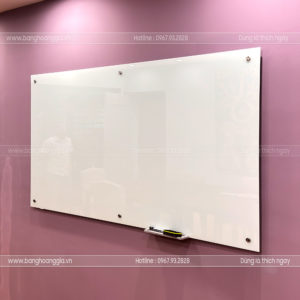 Khám phá bảng kính văn phòng an toàn 2 lớp Bảng Hoàng Gia – Thiết kế treo tường hiện đại, mặt kính trắng sữa hoặc trắng trong, viết mượt – xóa sạch, an toàn tuyệt đối, bảo hành 12 tháng, lắp đặt toàn quốc.