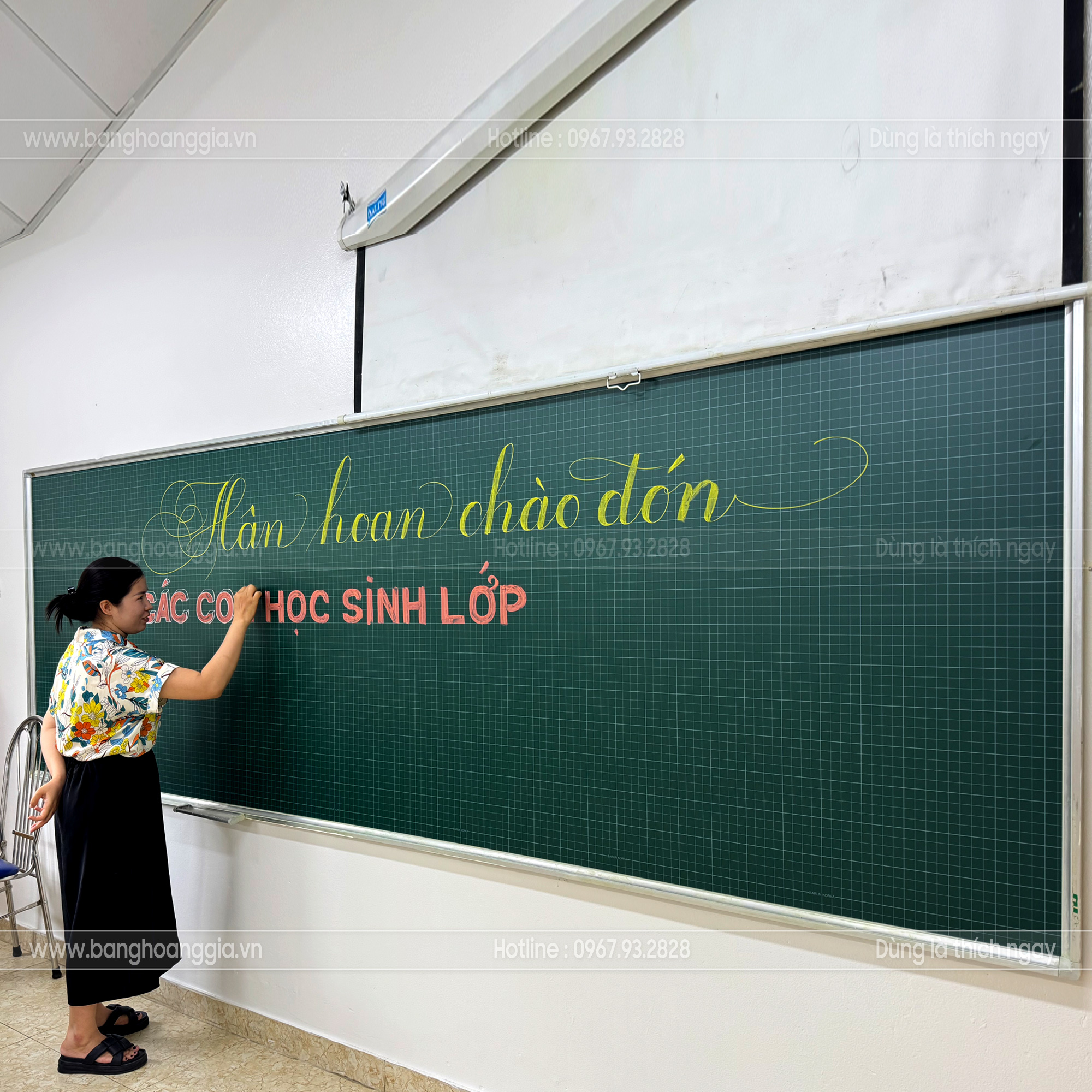 Bảng từ xanh kẻ ô ly là lựa chọn lý tưởng cho các buổi lễ khai giảng, đón học sinh lớp 1, viết khẩu hiệu đầu năm như: